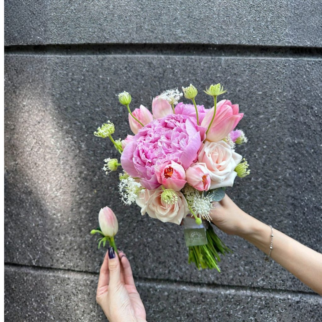 - Mẫu đơn: Biểu tượng của sự thanh thoát và quý phái, mẫu đơn trong bó hoa mang đến một cảm giác trang nhã, dịu dàng nhưng không kém phần cuốn hút.