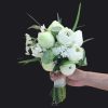 Xung quanh cụm sen là lớp hoa cà rốt trắng li ti, nhẹ như sương, phủ một lớp “voan” mỏng cho bó hoa. Chúng khiến bó sen vốn đơn giản trở nên bồng bềnh, sống động hơn mà vẫn giữ tinh thần tối giản. Lá thép cứng được uốn vòng mềm mại, ôm quanh khối hoa, tạo đường cong hiện đại, giúp bó hoa có chiều sâu và lên hình cực kỳ đẹp dưới mọi góc máy.Phần thân hoa được bó gọn bằng ruy băng trong suốt, để lộ những cọng sen xanh mướt, khiến bó hoa trông như vừa được nâng lên khỏi mặt nước. Khi cầm trên tay, cô dâu sẽ cảm nhận được sự chắc chắn, vừa vặn, dễ di chuyển suốt buổi lễ mà không bị nặng hay vướng.