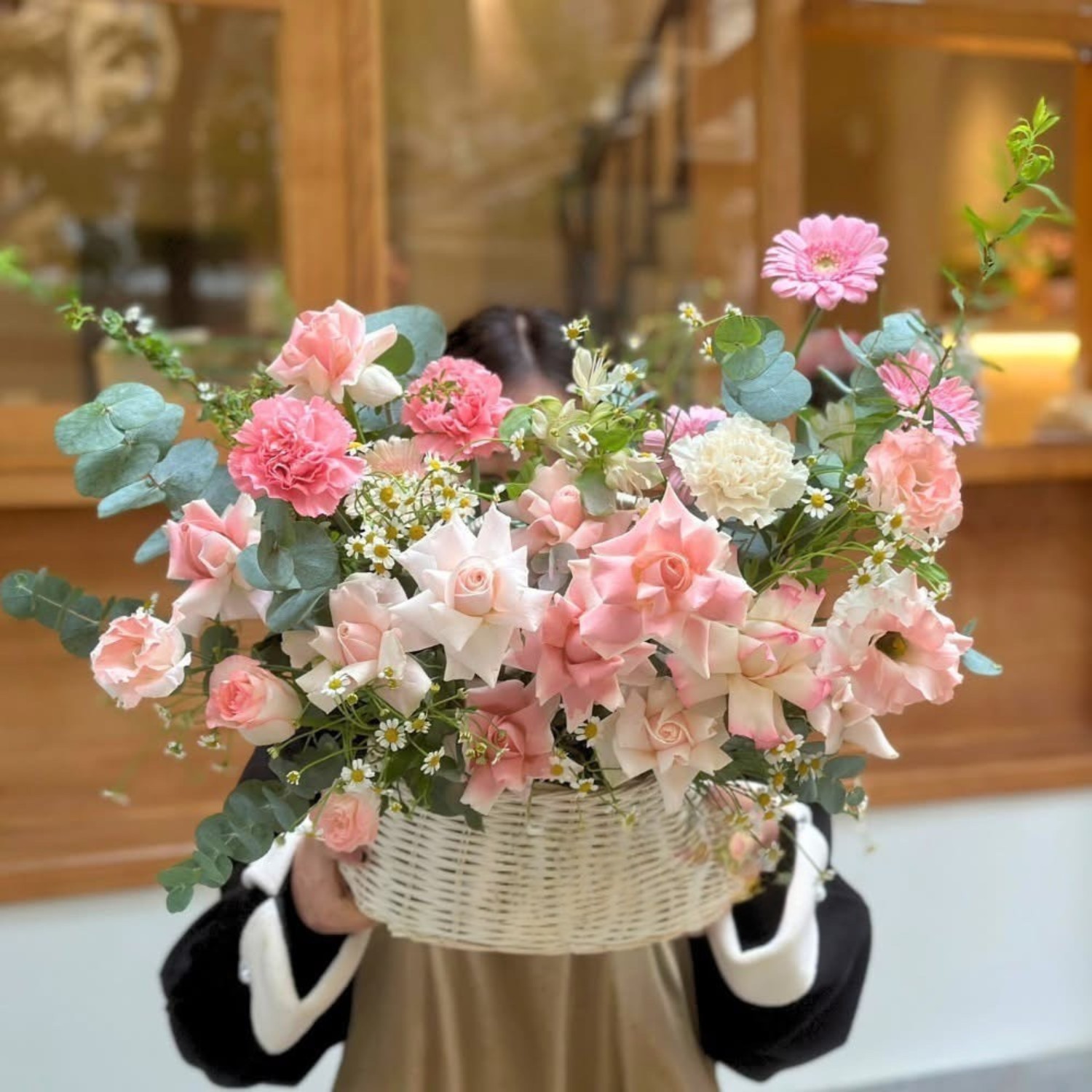 Giỏ hoa này là sự kết hợp hoàn hảo giữa các loài hoa tinh tế như hoa hồng, cẩm chướng, cát tường, hoa đồng tiền và lá bạc, tạo nên một tổng thể hoa tươi đẹp, sang trọng và đầy năng lượng. Mỗi loài hoa mang một ý nghĩa riêng biệt, tạo nên một món quà hoàn hảo để chúc mừng sinh nhật sếp.