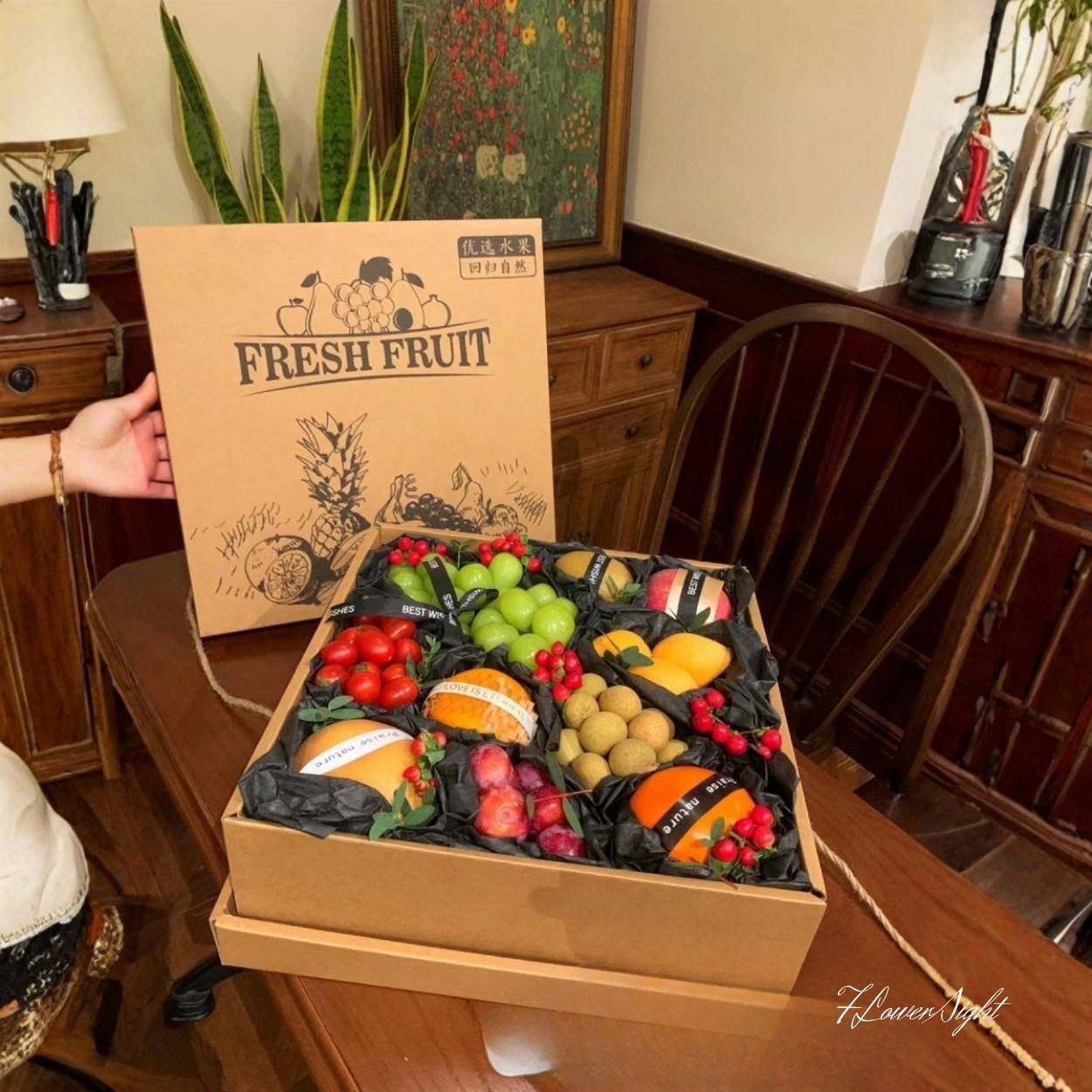 Sản phẩm tạo ra những khoảnh khắc bất ngờ và đáng nhớ. Trái cây tươi ngon kết hợp trong hộp giấy hình vuông mang lại sự ngọt ngào và sinh động, thích hợp cho nhiều dịp quan trọng và các mối quan hệ thân thiết.