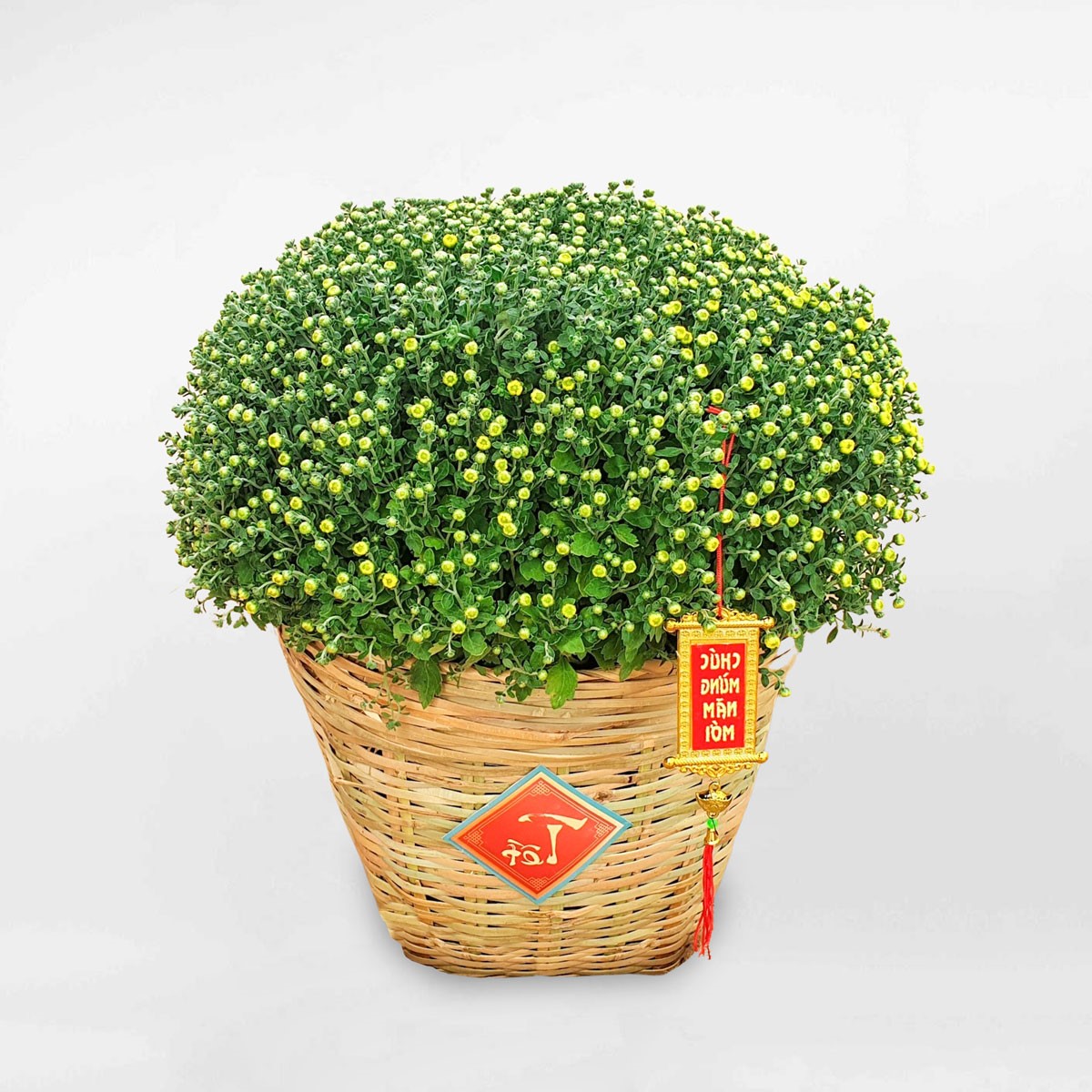 Chậu hoa cúc chưng Tết màu vàng: Màu vàng là màu của sự may mắn, tiền tài và sự thịnh vượng. Bạn có thể chưng hoa cúc vàng trên bàn thờ gia tiên, trước hiên nhà hoặc ở đại sảnh.