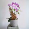 Được tạo hình tỉ mỉ với các đường nét tự nhiên, chậu hoa mang đến cảm giác vừa mềm mại vừa ấn tượng. Lan hồ điệp hồng khoe sắc kiêu sa, nổi bật trên nền lũa uốn lượn, cùng sen đá tượng trưng cho sự bền bỉ và gắn kết. Tất cả kết hợp hài hòa để tạo nên một món quà vừa đẹp mắt vừa giàu ý nghĩa.