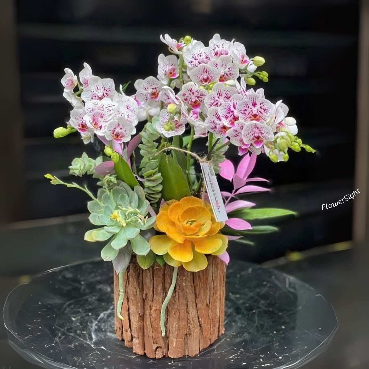 Chậu tiểu hồ điệp Coral Charm Orchid kết hợp lan, sen đá và lá chanh tươi mát, tạo nên vẻ đẹp tinh tế, sang trọng. Đây là món quà lý tưởng để tặng sinh nhật, tri ân sếp, kỉ niệm đặc biệt hoặc gửi lời nhắn nhủ yêu thương, khích lệ cho ngày mới thêm trọn vẹn niềm vui và năng lượng tích cực.