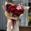 Sắc đỏ trong Criminal Love không phải gam đỏ tươi dễ đoán. Đó là đỏ trầm của hoa hồng Ecuador, dày cánh, form lớn, mang chiều sâu thị giác rõ rệt. Mỗi bông hoa được xếp sát, tạo thành một khối tròn đầy đặn, liền mạch, không khoảng hở thừa. Tổng thể bó hoa giống như một nhịp đập đều đặn – mạnh mẽ nhưng kiểm soát, nồng nàn nhưng không phô trương.