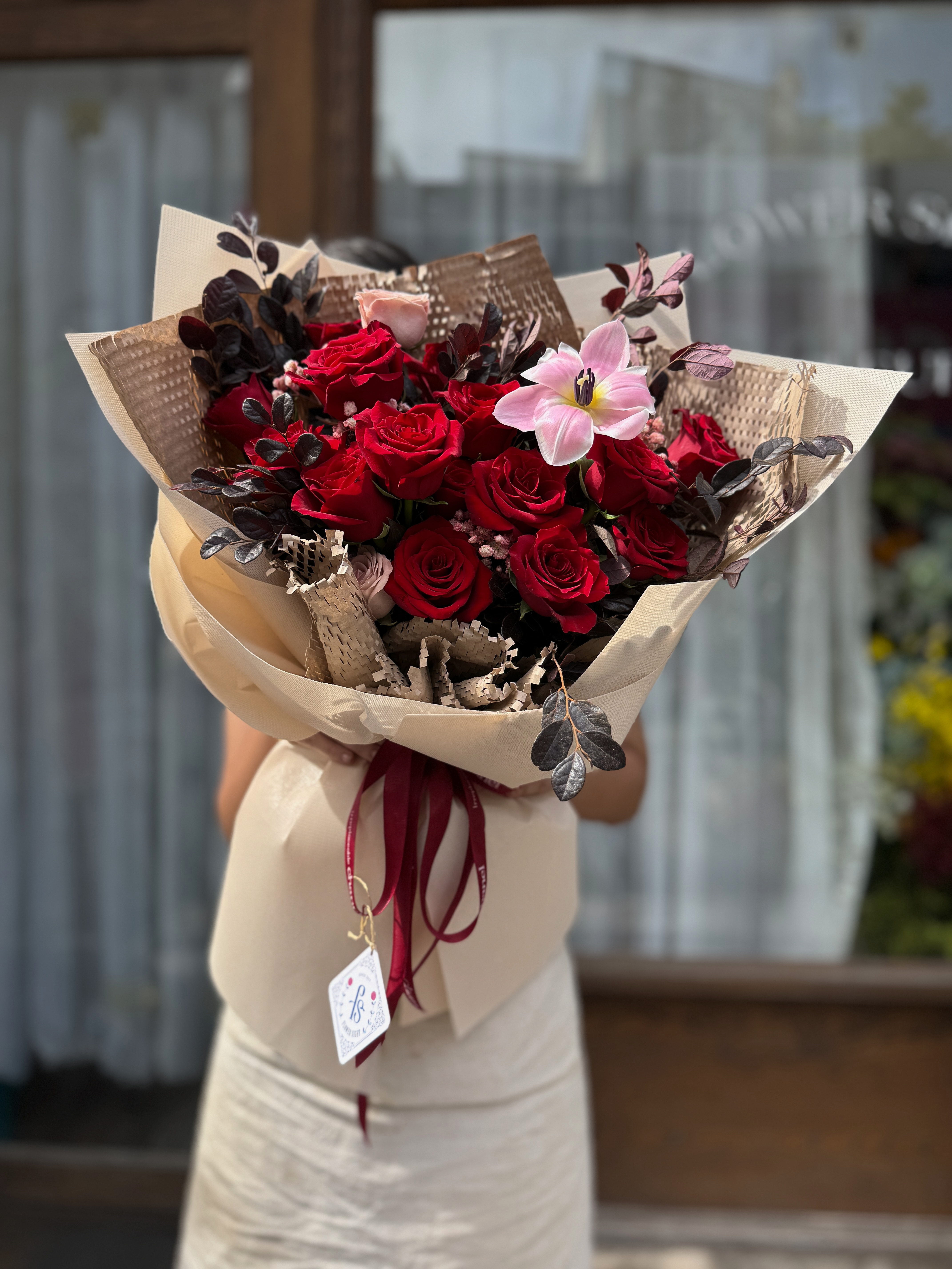Sự sang trọng của Criminal Love không đến từ số lượng hoa, mà đến từ chất lượng thị giác và cảm xúc. Mỗi chi tiết đều có chủ đích: từ màu hoa, cách bó, cho đến chất liệu giấy và nơ. Tất cả tạo nên một tổng thể nhất quán – mạnh, sâu và đầy dấu ấn.