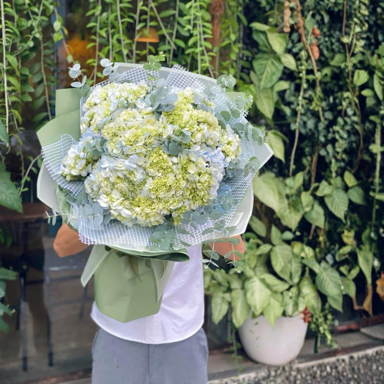 Bó hoa cẩm tú cầu này vì thế không cố kể câu chuyện lớn. Nó chỉ ở đó, tinh tế và vừa vặn, dành cho những ai trân trọng những điều không cần nói quá nhiều.
