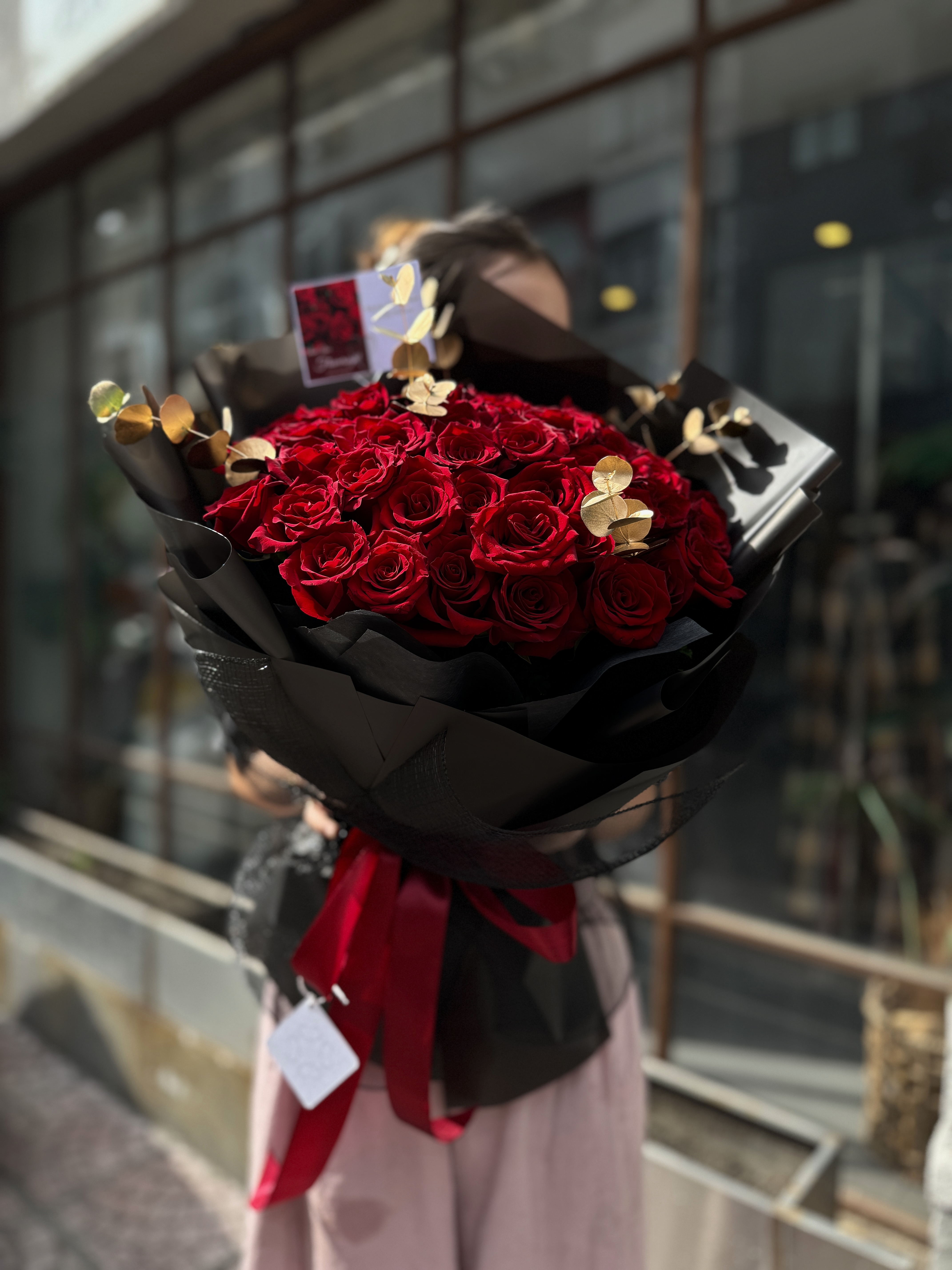 Có những bó hoa không cần nói quá nhiều, chỉ cần xuất hiện là đủ để người đối diện chậm lại một nhịp. “Dưới ánh trăng” là một bó hoa như thế – trầm lắng, sâu sắc và đầy chiều sâu cảm xúc, đúng tinh thần của một bó hoa hồng đỏ được thiết kế để ngắm nhìn thật lâu.