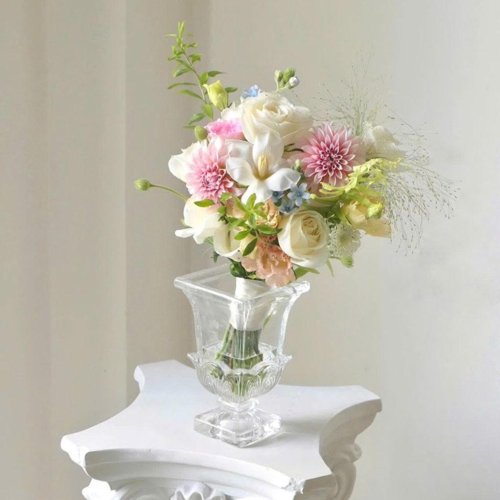 Bó hoa này không chỉ tôn vinh vẻ đẹp của cô dâu mà còn thể hiện sự trân trọng, kính trọng từ gia đình và bạn bè dành cho tình yêu của hai người.