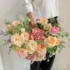 Feel the sunset là sự phối hợp hài hòa giữa các loài hoa mang tông màu cam và vàng ấm. Giỏ hoa gồm cúc mẫu đơn, hoa hồng cam spirit, hoa cát tường và đồng tiền. Mỗi loại hoa mang một vẻ đẹp riêng nhưng cùng tạo nên tổng thể thanh thoát và đầy lôi cuốn.