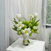 Bó hoa cưới này không chỉ giúp cô dâu thêm phần duyên dáng mà còn là món quà biểu trưng cho sự trân trọng, tôn vinh tình yêu trong suốt cuộc đời. Với thiết kế nhẹ nhàng, dễ dàng cầm nắm, bó hoa này không chỉ là món quà trang trí, mà còn giúp cô dâu di chuyển tự nhiên, thoải mái trong suốt buổi lễ.