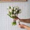 Bên cạnh đó, hoa cát tường với những cánh hoa mỏng manh, tạo thêm chiều sâu cho bó hoa, đồng thời tôn lên vẻ đẹp nhẹ nhàng của tulip. Chiếc nơ thêm phần điệu đà và duyên dáng, làm cho bó hoa trở nên hoàn mỹ hơn bao giờ hết.