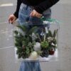 Bên ngoài, nắp hộp được cố định bằng tay cầm trong suốt và chiếc nơ màu xanh ngọc ánh satin, vừa đủ nổi bật nhưng không lấn át tổng thể. Toàn bộ chi tiết được sắp đặt để khi khách cầm hộp di chuyển, bố cục bên trong vẫn vững, không xô lệch, giữ trọn vẻ an yên của “khu rừng” thu nhỏ.