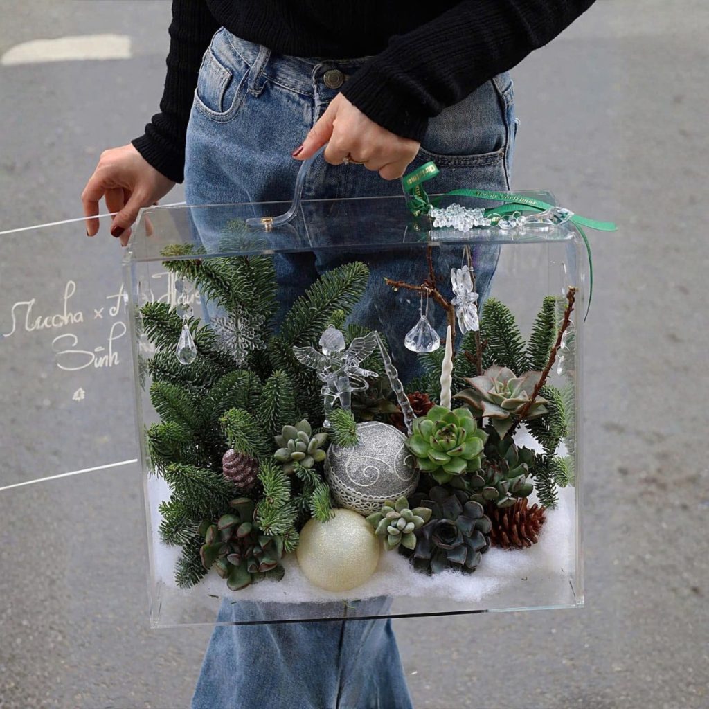 Bạn có bao giờ nghĩ, một khu rừng thông phủ tuyết, những quả châu lấp lánh và mảng sen đá căng tràn sức sống lại có thể nằm gọn trong tay mình? Hộp Noel mica Frank được tạo ra chính từ ý tưởng ấy – mang cả không khí Giáng Sinh an lành, tinh tế vào một chiếc hộp trong suốt, để mỗi lần bạn nâng nhẹ tay cầm là một lần mùa đông châu Âu khẽ rung lên trước mắt.