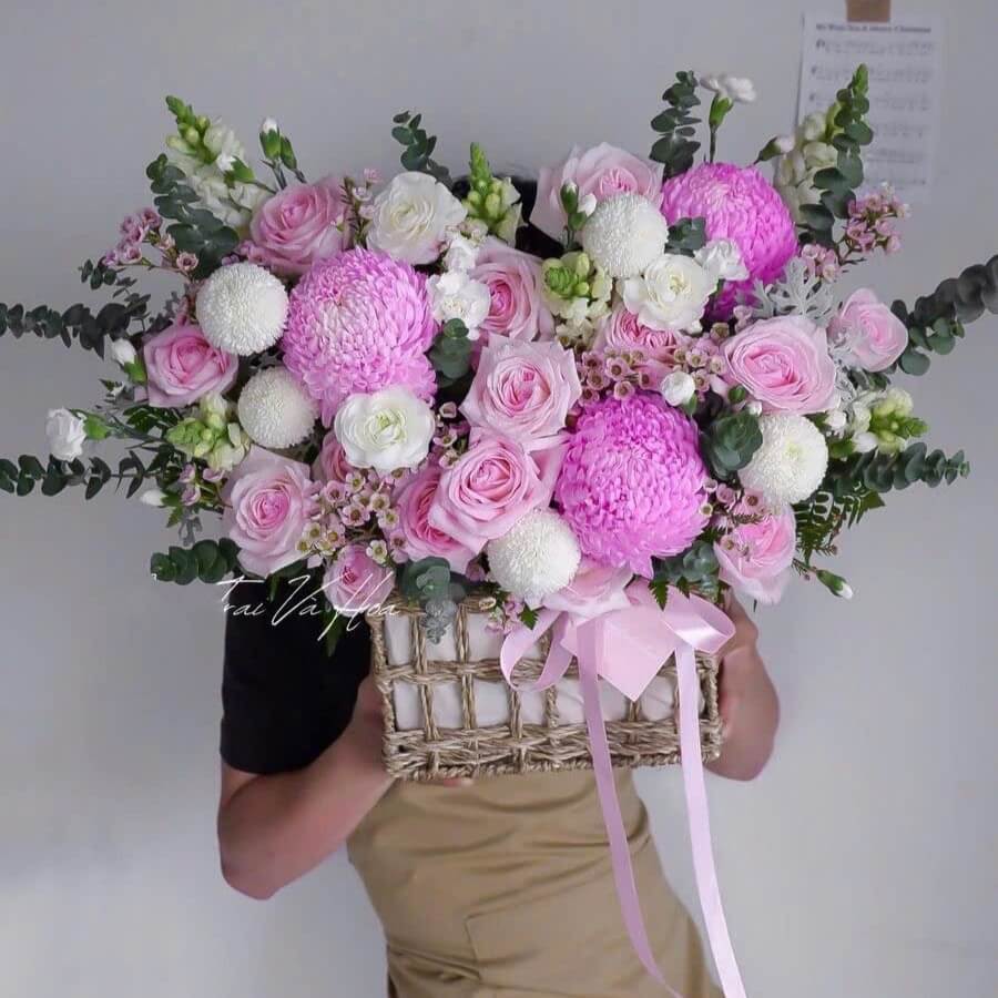 Ngày lễ kỷ niệm: Vào các dịp như kỷ niệm ngày cưới, kỷ niệm tình yêu, giỏ hoa vuông mang đến sự lãng mạn, hiện đại nhưng vẫn giữ nét thanh lịch, phù hợp để làm quà tặng cho người thân yêu.