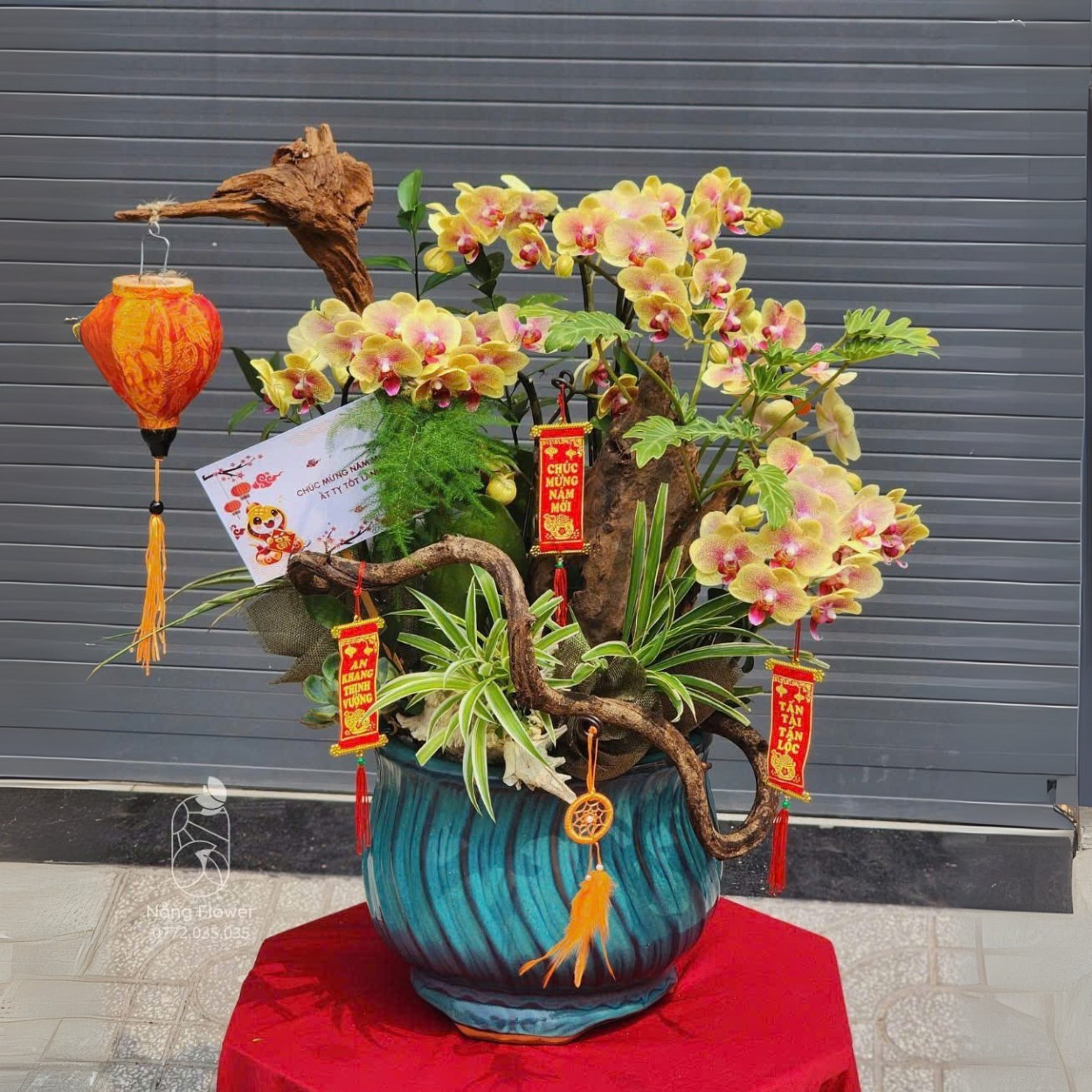 Khi chọn chậu hoa làm quà mừng thọ, đó không chỉ là món quà sang trọng mà còn gửi gắm lời chúc trường thọ, sức khỏe dồi dào và bình an viên mãn. Sắc vàng rực rỡ của hoa lan kết hợp cùng khánh treo mang ý nghĩa hưng thịnh, như lời cầu chúc cho ông bà, cha mẹ luôn vui vẻ và an yên bên gia đình..