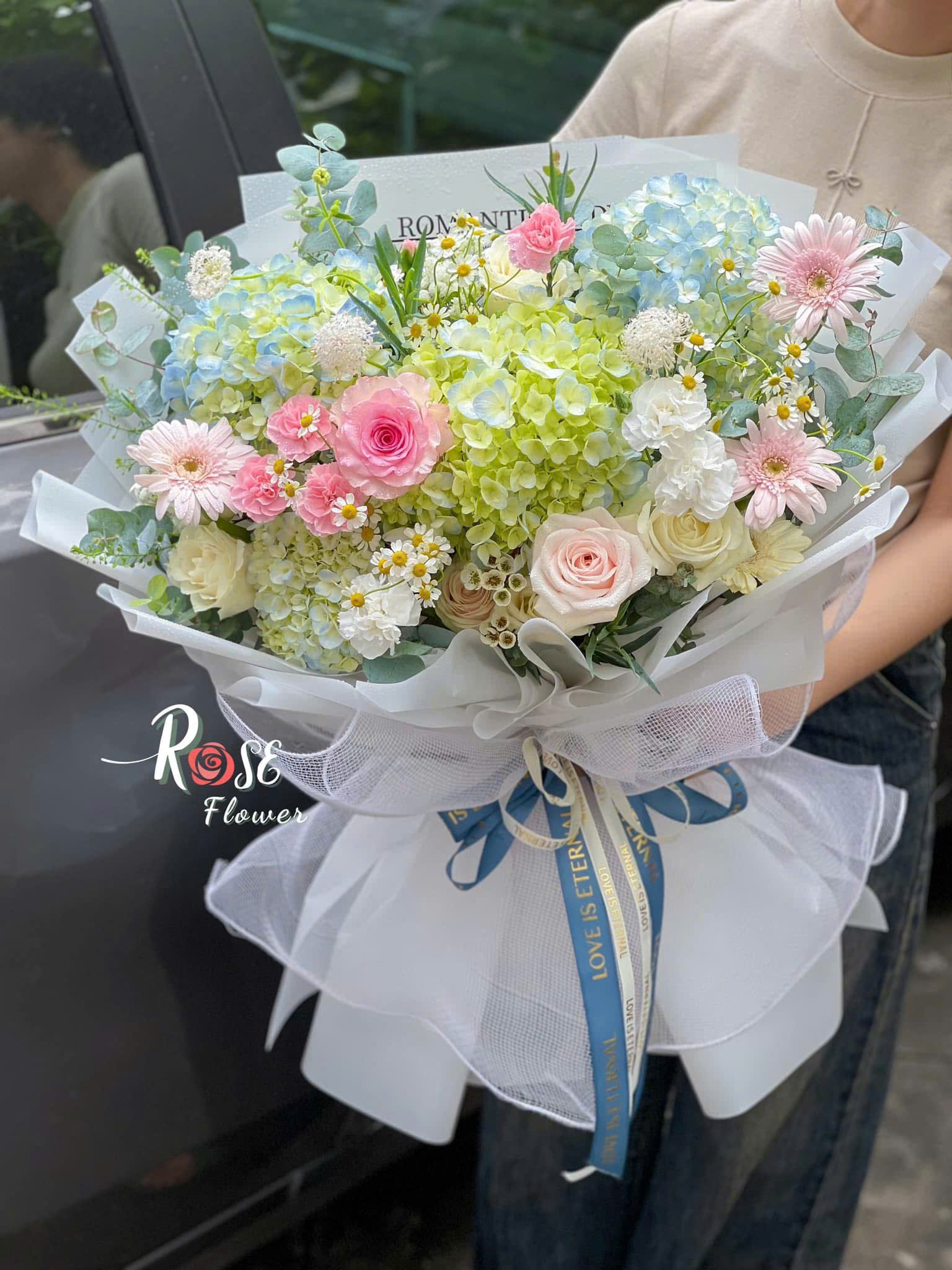 Nếu bạn đang tìm kiếm một món quà ý nghĩa và sang trọng, bó tú cầu Heaven On My Mind chính là lựa chọn hoàn hảo. Được tạo nên từ sự kết hợp tinh tế giữa các loài hoa cao cấp như cẩm tú cầu, hoa hồng, thủy châu, thanh liễu, đồng tiền, cẩm chướng, và cúc tana, sản phẩm mang đến vẻ đẹp thanh thoát, đầy cuốn hút.