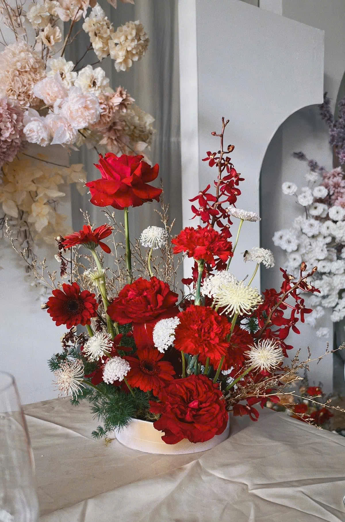 Tất cả các loài hoa này hòa quyện vào nhau, tạo nên một dĩa hoa không chỉ đẹp mắt mà còn gửi gắm những lời chúc tốt đẹp, mang lại may mắn, hạnh phúc cho người nhận.