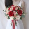 Hoa cưới cầm tay hoa hồng đỏ là loài hoa thể hiện về lòng biết ơn và hứa hẹn tình yêu bền vững, luôn nồng nàn, cháy bỏng theo năm tháng. Màu hoa này cũng là biểu tượng của sự đoàn tụ, hạnh phúc và ngọt ngào, cũng như là lời hứa về một tương lai tươi sáng.