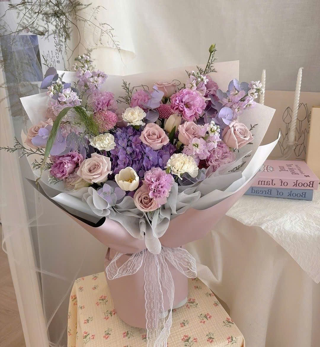 Hoa màu trắng tím là món quà ý nghĩa, đặc biệt và tinh tế cho những người thân yêu. Bó hoa chứa chan tình cảm và sự chân thành.