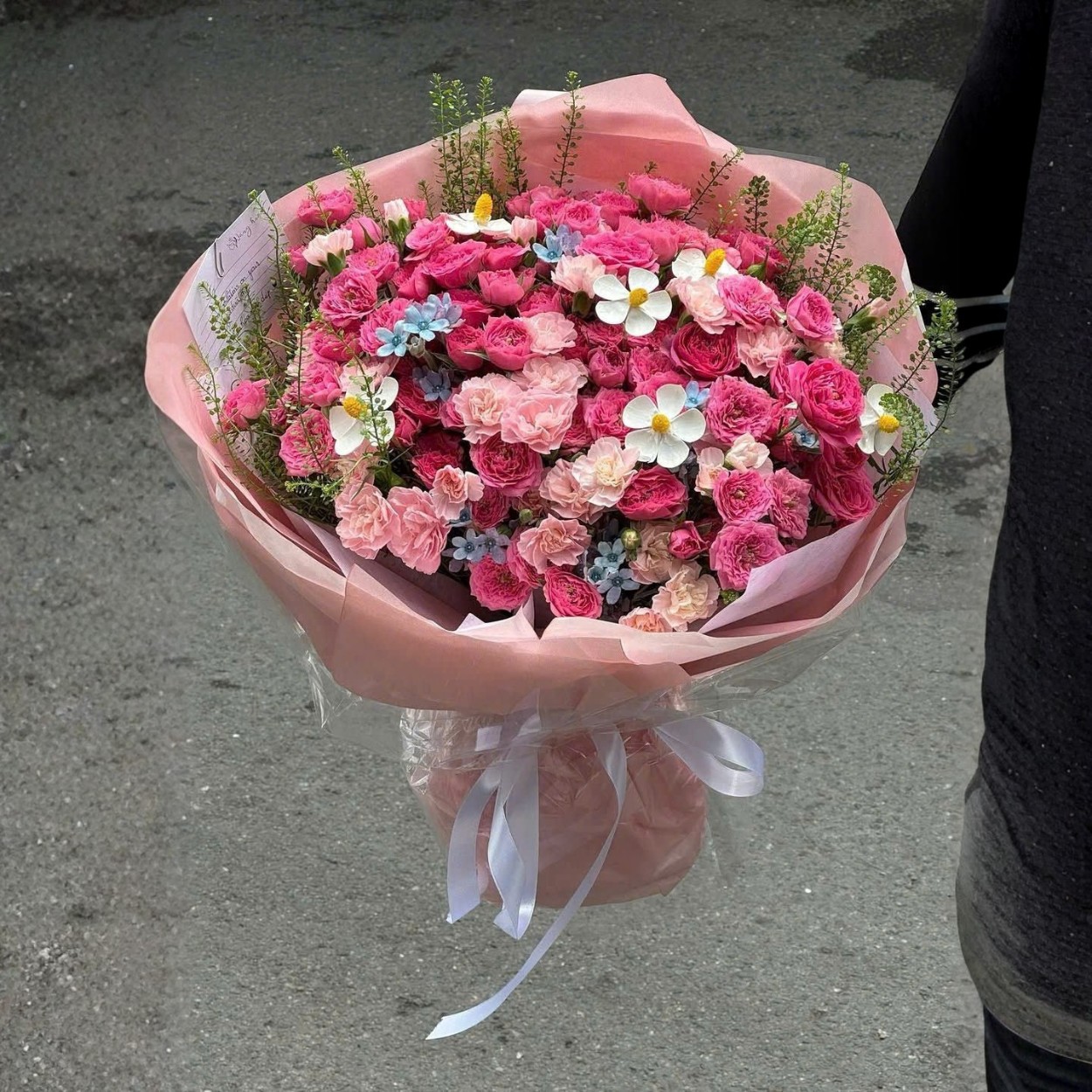 Bên cạnh đó, bó hoa còn được kết hợp cùng giấy gói tinh tế và nơ xinh xắn, làm nổi bật vẻ đẹp của các loài hoa. Mỗi chi tiết nhỏ đều được chăm chút kỹ lưỡng, mang lại một sản phẩm hoàn hảo trong từng góc nhìn.