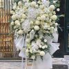 Điểm nổi bật của Howling nằm ở bố cục lớp lang: phần hoa chính nở rộng như một vòng ôm, phần dưới được thu gọn để tạo chiều sâu, giúp kệ đứng vững và lên ảnh đẹp ở nhiều góc. Giấy gói trắng được xử lý mềm, rủ nhẹ theo nếp; nơ dài buông tinh tế, đủ hiện diện mà không “lấn át” hoa.