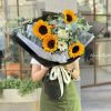 Điểm đặc biệt của mẫu hoa đẹp này nằm ở các hoa lá phụ được kết hợp một cách tinh tế, làm nổi bật vẻ đẹp của hoa hướng dương mà không làm mất đi sự nhẹ nhàng, thanh thoát của tổng thể. Giấy gói trắng đen càng làm tăng thêm sự sang trọng và tinh tế cho bó hoa.