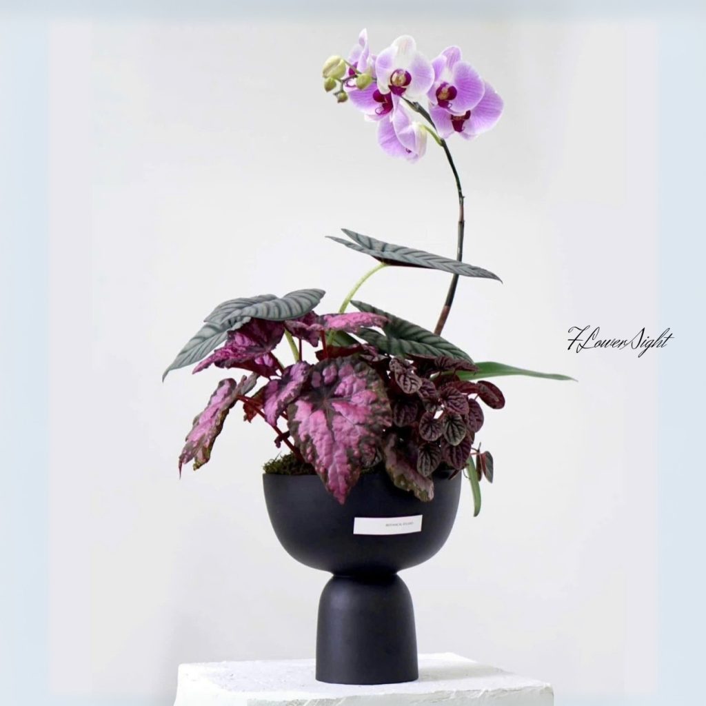 Lan Hồ Điệp Ánh Dương không đơn thuần là một chậu hoa; nó là một lời thì thầm đầy sức sống. Từng cánh tím mở ra như cười với ánh sáng, lá đỏ và lá trái tim lấp lánh tạo nên một khung cảnh nhỏ xinh nhưng tràn đầy ấm áp. Lan chậu nhỏ này mang đến cảm giác rằng dù ở bất cứ đâu – góc bàn làm việc hay kệ sách ở nhà – bạn vẫn có một “mặt trời” riêng để tiếp thêm động lực.
