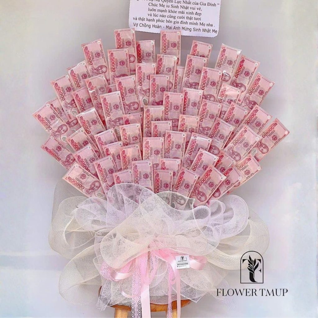 Khai trương là cột mốc đánh dấu sự khởi đầu trong công việc kinh doanh. Bó hoa tiền này trở thành lời chúc phát tài và phát triển bền vững cho gia chủ. Sự kết hợp hài hòa của màu sắc và chi tiết trang trí tạo nên món quà vừa sang trọng vừa ý nghĩa, thích hợp để gửi gắm trong ngày đặc biệt này.