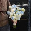 Điểm đặc biệt của Man I Need nằm ở bố cục dạng mở, không đậm tính hình học mà giống một chuyển động nhẹ: như thể bó hoa vừa được cô dâu nâng lên từ vườn vào buổi sáng. Những đóa hồng xanh nhấn ở trung tâm, lan trắng đặt lệch một chút để tạo đường nhìn mềm, thủy châu và cát tường bao quanh giúp ánh sáng len qua các lớp cánh hoa.Khi cầm trên tay, bó hoa không nặng nề mà mang đến cảm giác thoáng – đúng tinh thần “tối giản sang trọng” của các cô dâu hiện đại.