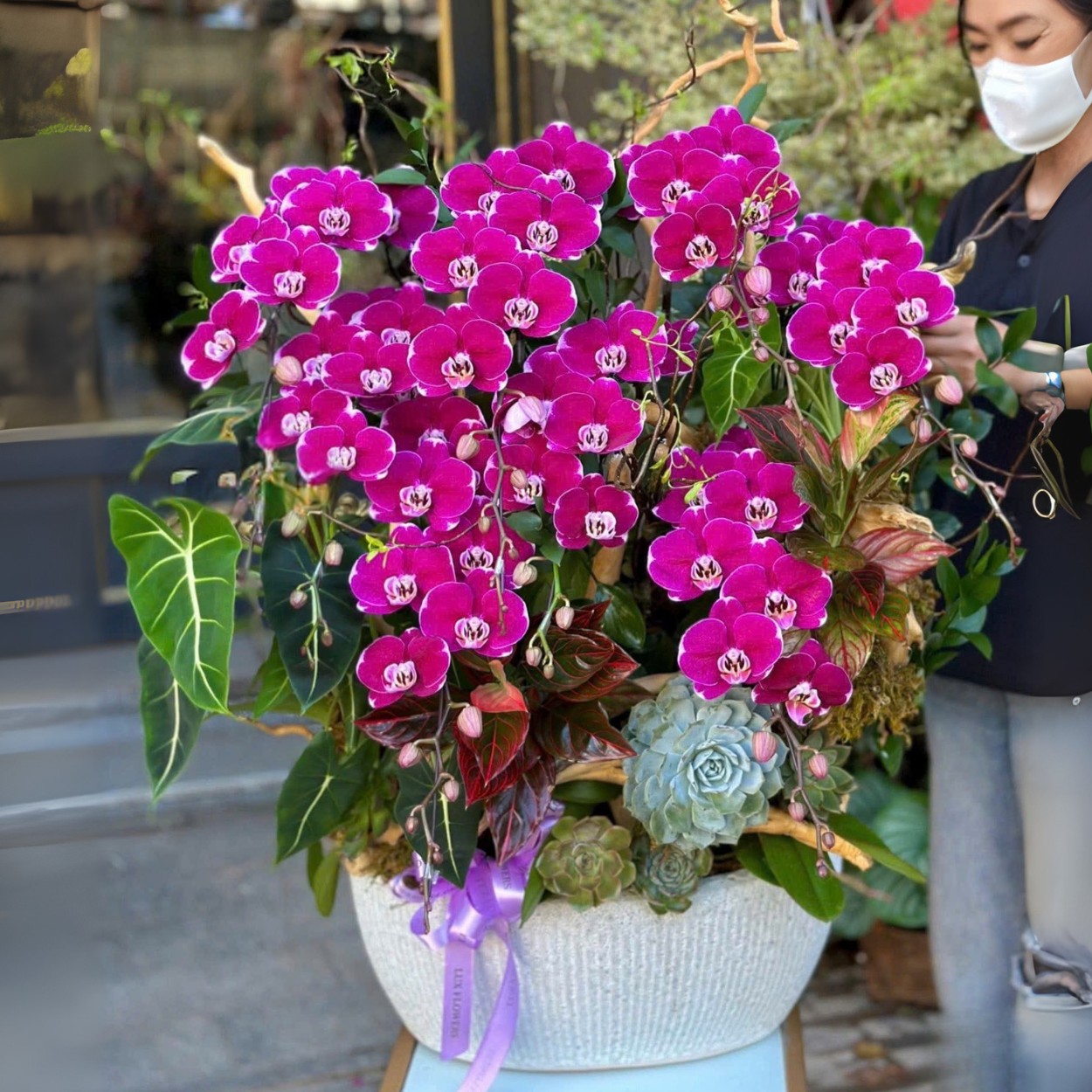 Trong dịp khai trương, chậu hoa Master mang thông điệp thuận lợi và thành công. Sắc hồng thắm rực rỡ từ lan điệp đại kết hợp với sen đá giúp không gian nổi bật, đồng thời gửi lời chúc may mắn đến chủ cửa hàng hoặc văn phòng mới. Chậu hoa tạo ấn tượng sang trọng, góp phần thu hút tài lộc và hạnh phúc.