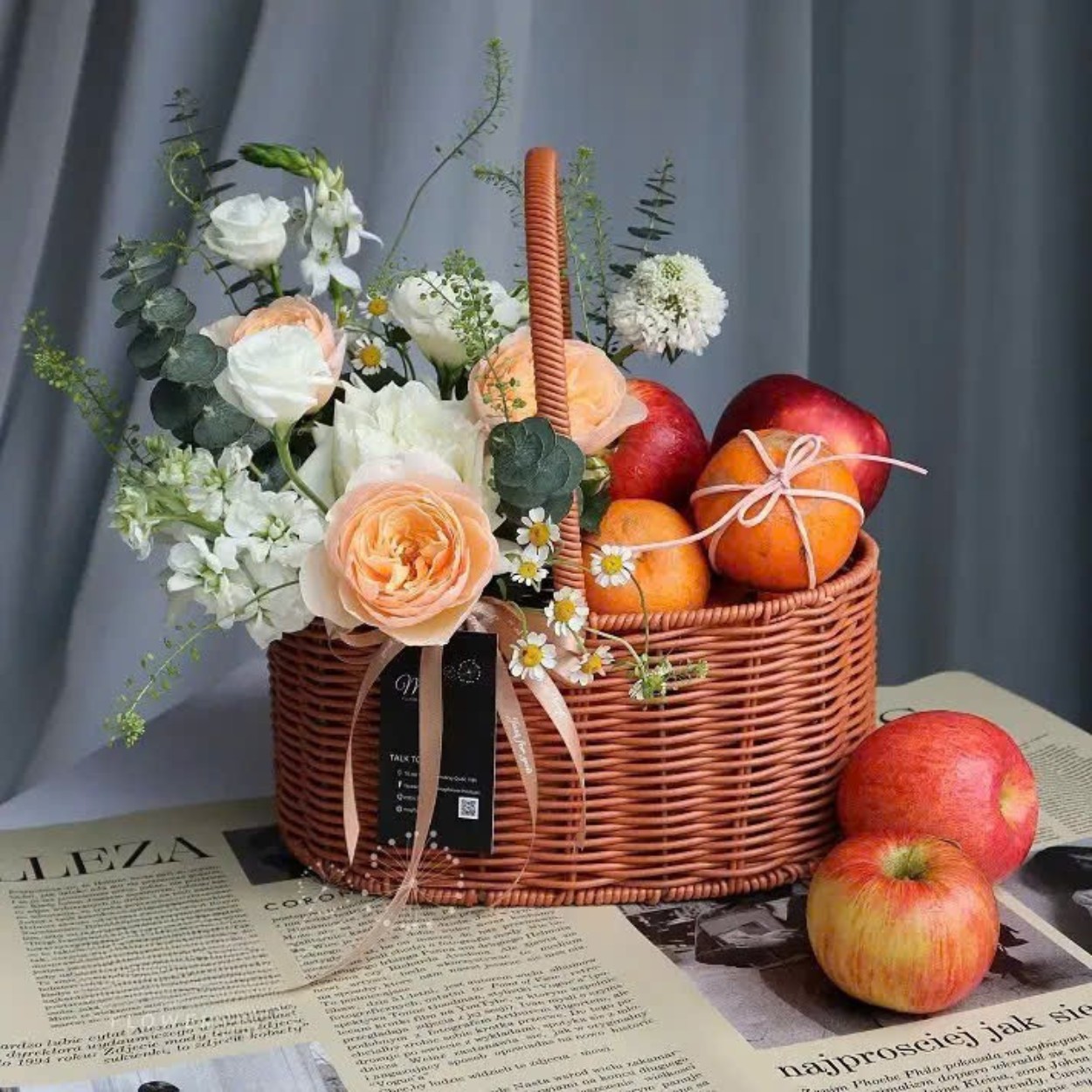 Không cần lời nói, một giỏ hoa như “Memories” cũng đủ để truyền tải những cảm xúc chân thành nhất. Từng nhành hoa, từng quả cam – quả táo đều tượng trưng cho những ký ức ngọt ngào, những phút giây sẻ chia và quan tâm.