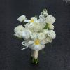 • Chuôi hoa được quấn kín bằng ruy băng lụa màu kem, để khi cô dâu nắm tay không bị cấn, lại tạo cảm giác êm ái, chắc tay trong suốt buổi lễ và khi chụp ảnh.