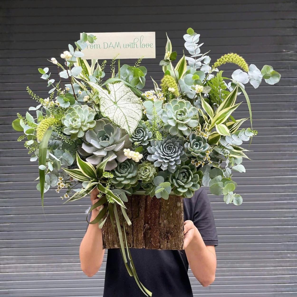Moonstruck không tìm cách kể một câu chuyện ồn ào. Sản phẩm dành cho những ai yêu sự chậm rãi, sâu sắc, trân trọng vẻ đẹp bền vững hơn là nhất thời. Giỏ hoa phù hợp để đặt trong không gian sống hiện đại, bàn làm việc, quầy tiếp khách hay những nơi cần một điểm nhấn xanh mang tính cân bằng.
