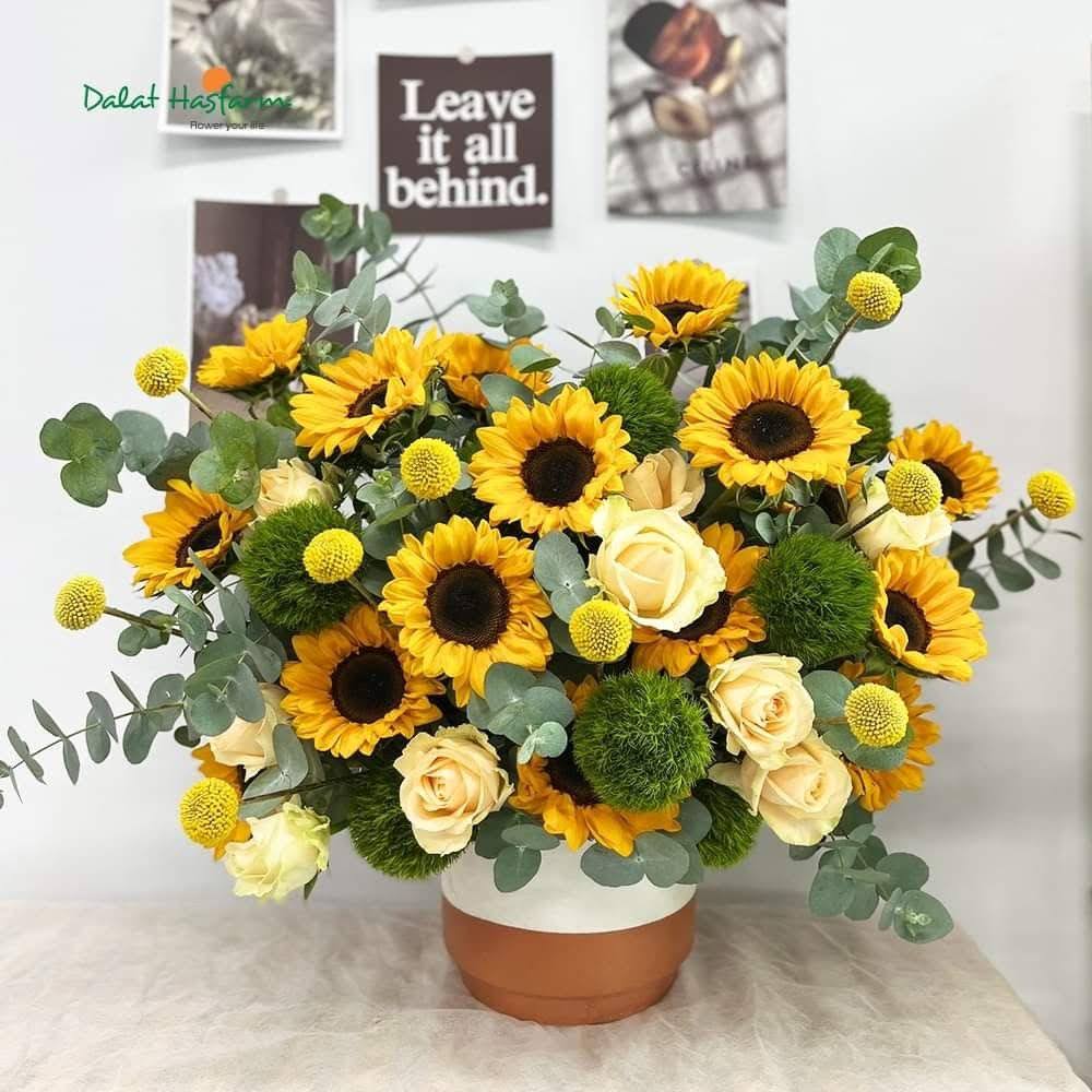 Sản phẩm chậu hoa hướng dương được FLowerSight thiết kế: