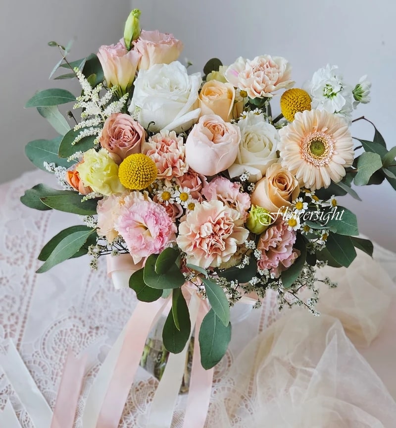 Món quà này là bó hoa cưới lý tưởng cho những cô dâu yêu vẻ đẹp tinh tế, tự nhiên và mang dấu ấn riêng. Với sắc màu nhẹ nhàng và bố cục thoáng đãng, bó hoa tươi này phù hợp với các tiệc cưới ngoài trời, lễ cưới mang phong cách tối giản hoặc vintage.