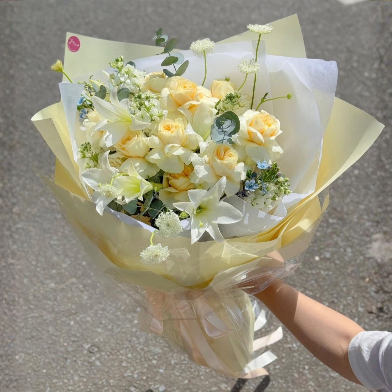 Bó hoa “My Hero” mang trong mình sự kết hợp tinh tế giữa vẻ đẹp nhẹ nhàng và sức mạnh của tình yêu. Sự pha trộn hoàn hảo giữa các loài hoa và lá mang lại cảm giác thanh thoát nhưng không kém phần lôi cuốn. Hoa hồng Beatrice là biểu tượng của tình yêu nồng nàn, còn hoa lys mang đến thông điệp về sự thanh cao, trong sáng. Với từng cánh hoa được chăm chút tỉ mỉ, bó hoa này sẽ khiến người nhận cảm thấy đặc biệt và được yêu thương.