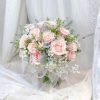 Mystery of Love là bó hoa cưới dành cho những cô dâu yêu sự tinh tế. Vẫn là hoa hồng – loài hoa quen thuộc, nhưng trong sắc hồng phấn nhẹ như lớp sương mờ, chúng mang đến cảm giác mềm mại, an yên và thuần khiết. Kết cấu bó hoa tròn đầy, ôm sát nhưng không gò bó, toát lên nét thanh thoát rất riêng – đủ nổi bật nhưng không phô trương, đủ dịu dàng để làm nền cho vẻ rạng rỡ của cô dâu.Bố cục hoa được xử lý theo phong cách tự nhiên: từng bông hồng được đặt xen kẽ hoa baby trắng, phủ quanh bằng lớp lá bạc mỏng như tấm voan mềm, tất cả được cố định bằng nơ ren trong suốt – tạo cảm giác như bó hoa đang thở, đang chuyển động theo từng bước đi của cô dâu.