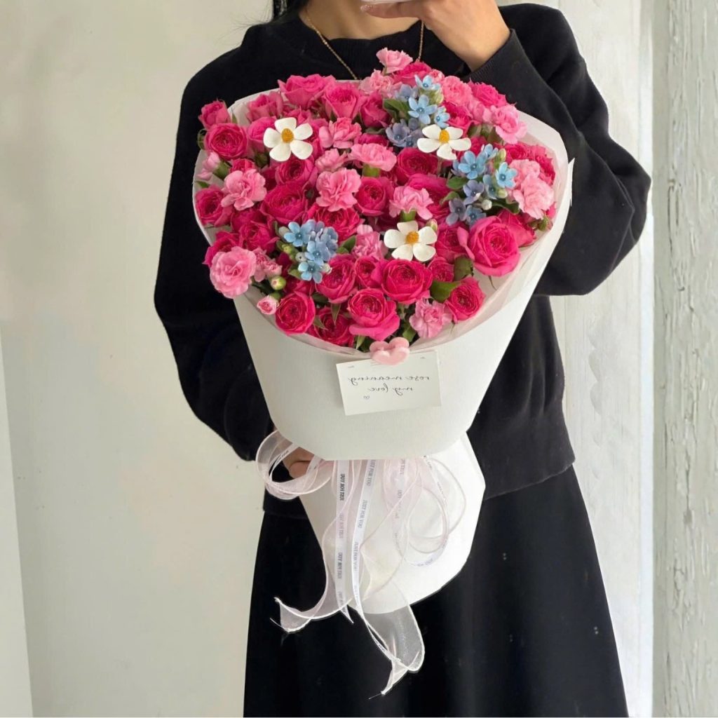 Bó hoa này không kể câu chuyện bằng sự cầu kỳ, mà bằng cảm giác. Là khi người nhận cầm bó hoa trên tay, thấy lòng dịu lại. Là khi sắc hồng không chỉ là màu sắc, mà là một trạng thái cảm xúc – ấm áp, dễ chịu và đầy thiện cảm.