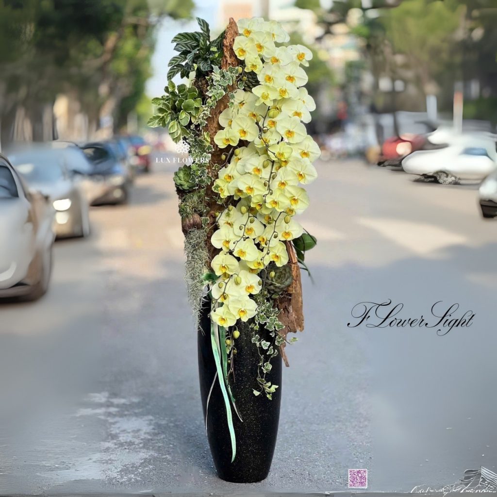 Trong dịp khai trương, chậu hoa này đại diện cho sự thăng tiến và thành công. Sắc hoa tươi sáng kết hợp tinh tế với các lá phụ và gỗ tạo nên vẻ đẹp sang trọng. Đây là món quà vừa ý nghĩa vừa đẳng cấp, truyền lời chúc công việc kinh doanh thuận lợi, thịnh vượng và tràn đầy năng lượng tích cực.
