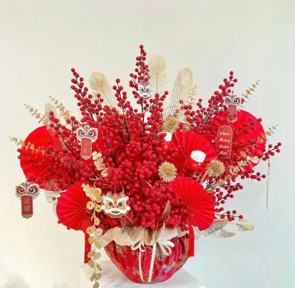 Bó hoa cũng truyền tải những lời chúc mừng, mong muốn cho một năm mới tràn đầy tài lộc và may mắn. Bạn có thể lựa chọn bó hoa này để tặng những người thân yêu hoặc tặng đối tác, khách hàng như một lời chúc tết chân thành và ý nghĩa.