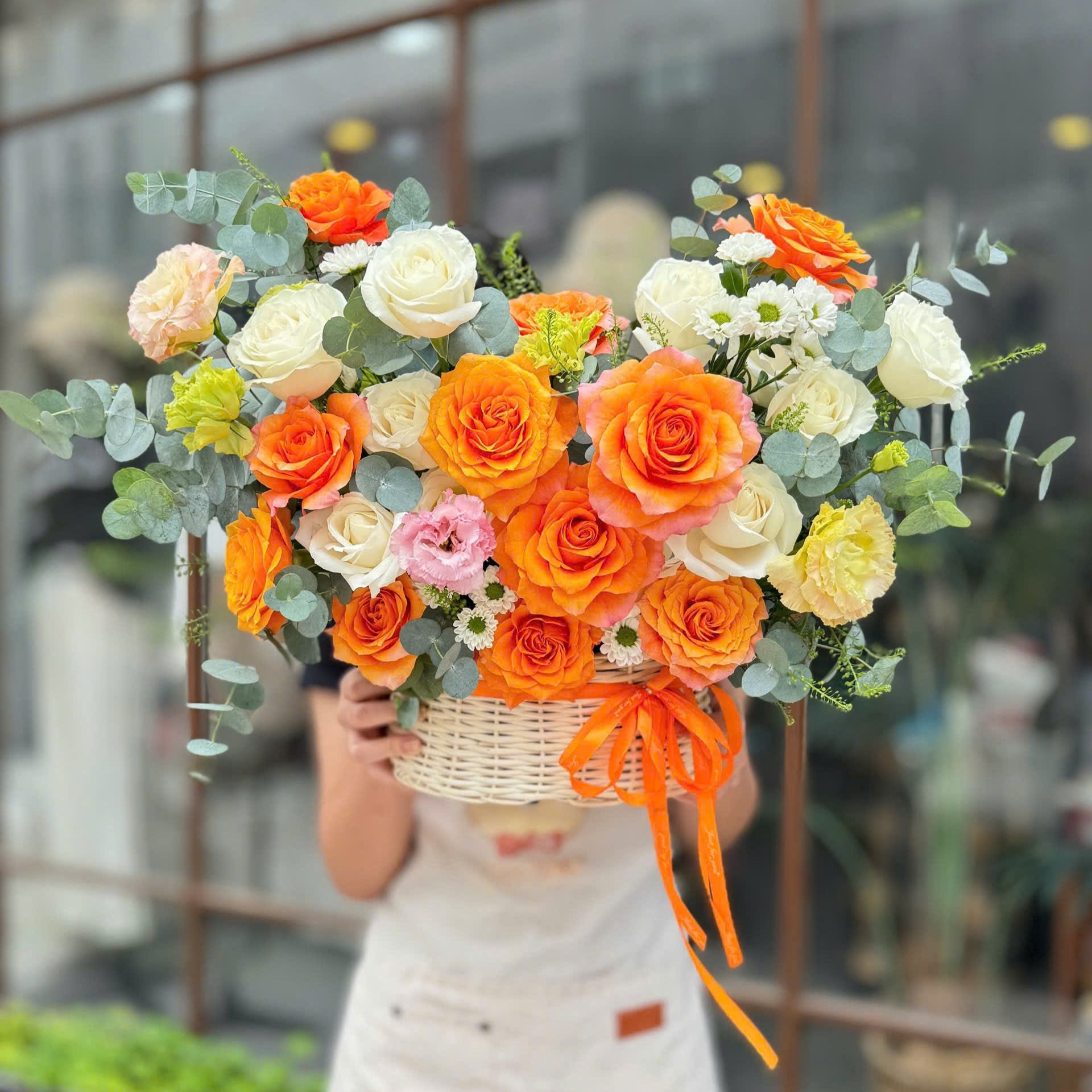 Bó hoa không chỉ đẹp ở màu sắc mà còn chứa đựng nhiều tầng ý nghĩa. Mỗi bông hoa như lời chúc: “Chúc bạn luôn mạnh mẽ, tiến về phía trước như ánh nắng đầu ngày.” Cam là màu của sự sáng tạo và bứt phá, còn trắng là lời chúc về sự minh bạch và đoàn kết trong mọi hành trình.