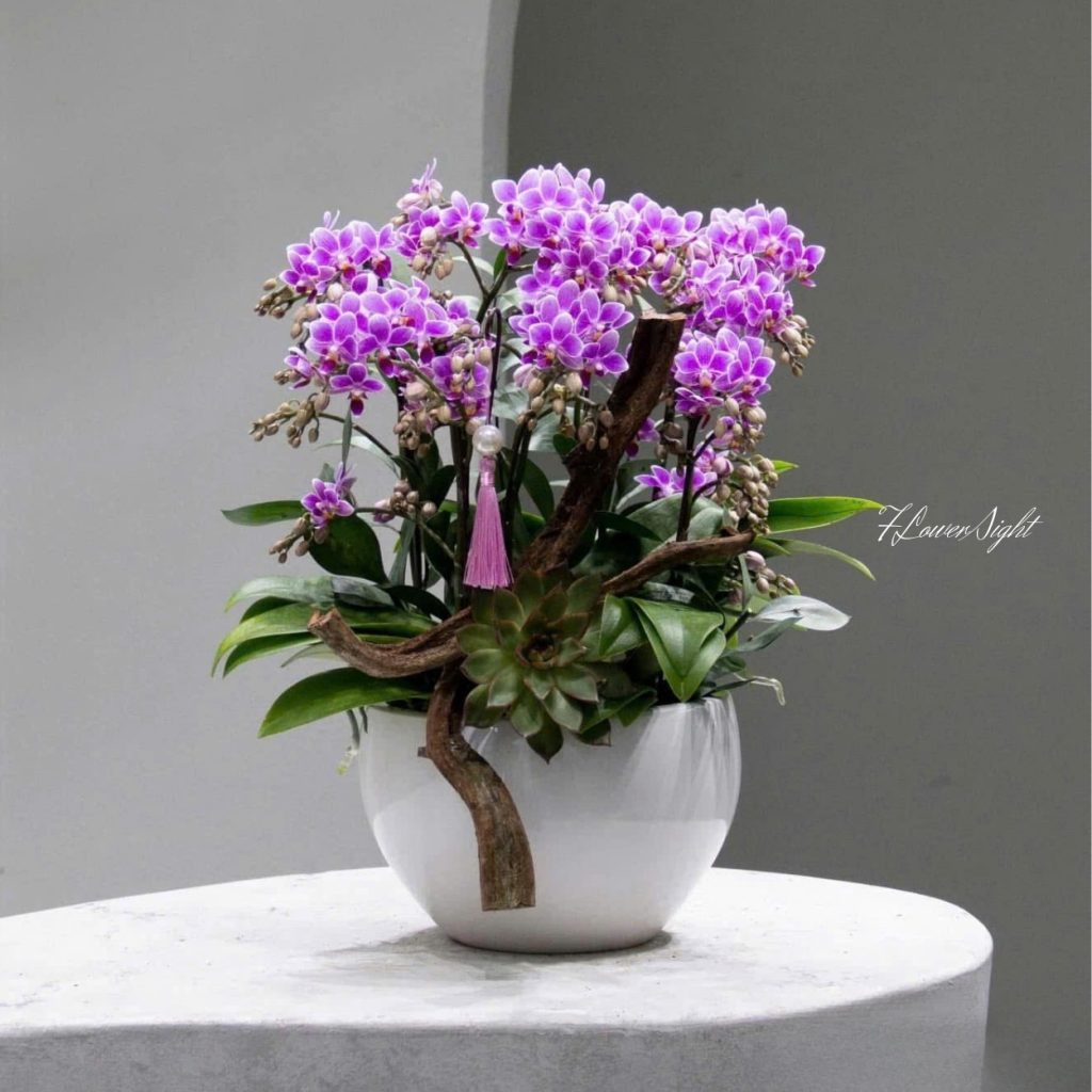 Nhất Tâm là lựa chọn giản dị mà không kém phần ý nghĩa, thích hợp cho nhiều dịp quan trọng. Vẻ đẹp dung hòa của lan, sen đá và dây rừng khiến chậu hoa trở thành món quà lưu giữ kỷ niệm. Đây là cách tuyệt vời để trao đi yêu thương và gửi gắm niềm vui chân thành đến người thân yêu.