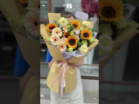 Bó hoa này mang trong mình những thông điệp đầy hy vọng và sự tích cực. Hoa hướng dương biểu tượng cho sự tươi sáng và niềm tin vững vàng vào tương lai. Hoa đồng tiền là đại diện của sự thịnh vượng, phúc lộc và niềm vui.