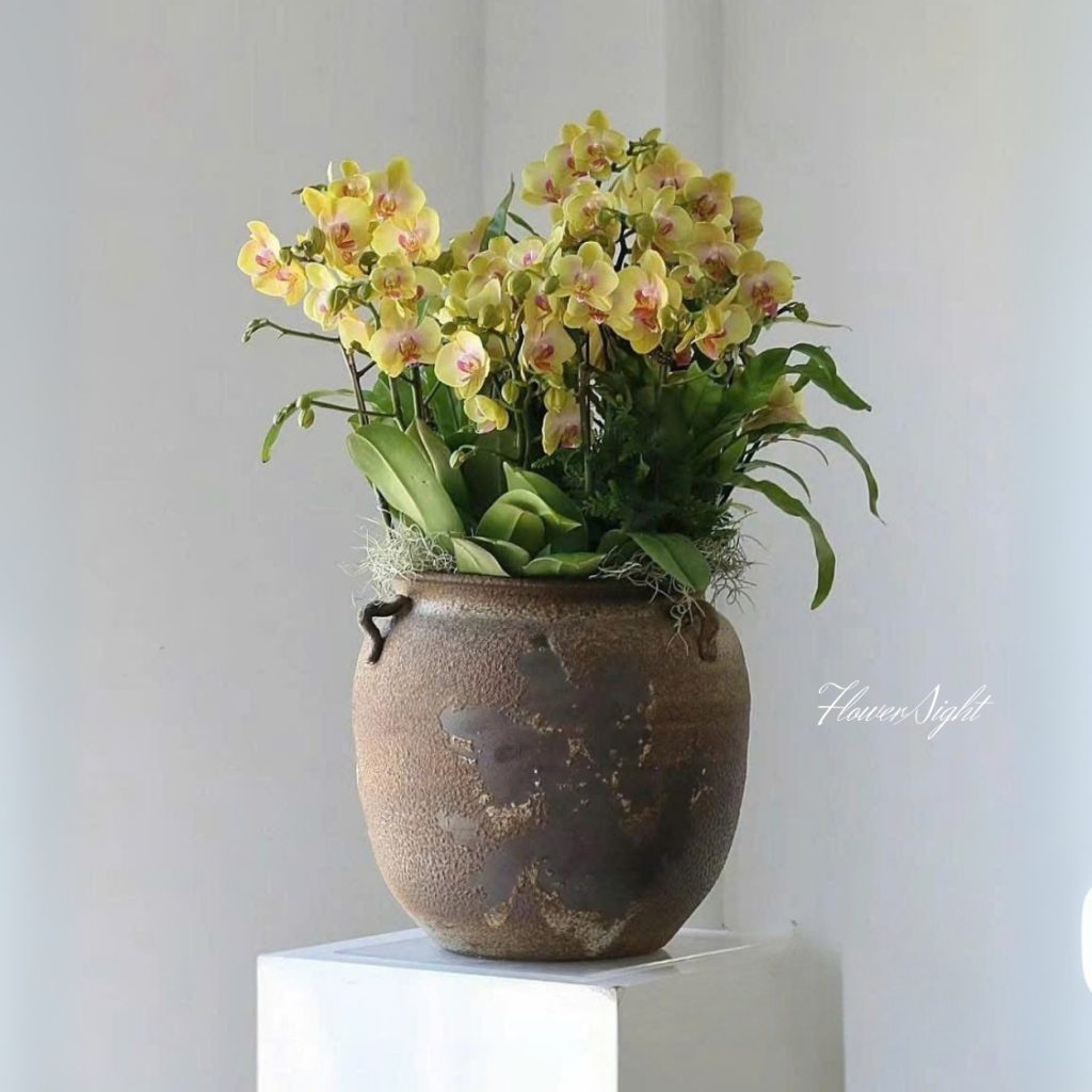 Trong dịp sinh nhật hoặc để trang trí nhà, chậu lan mang vẻ đẹp thanh lịch và tinh tế. Chậu hoa không chỉ làm đẹp không gian mà còn gửi gắm thông điệp chúc hạnh phúc, may mắn và an lành. Sự kết hợp hài hòa giữa hoa và gốm tạo điểm nhấn độc đáo, giúp căn phòng trở nên sinh động, tươi sáng và ấm cúng hơn.