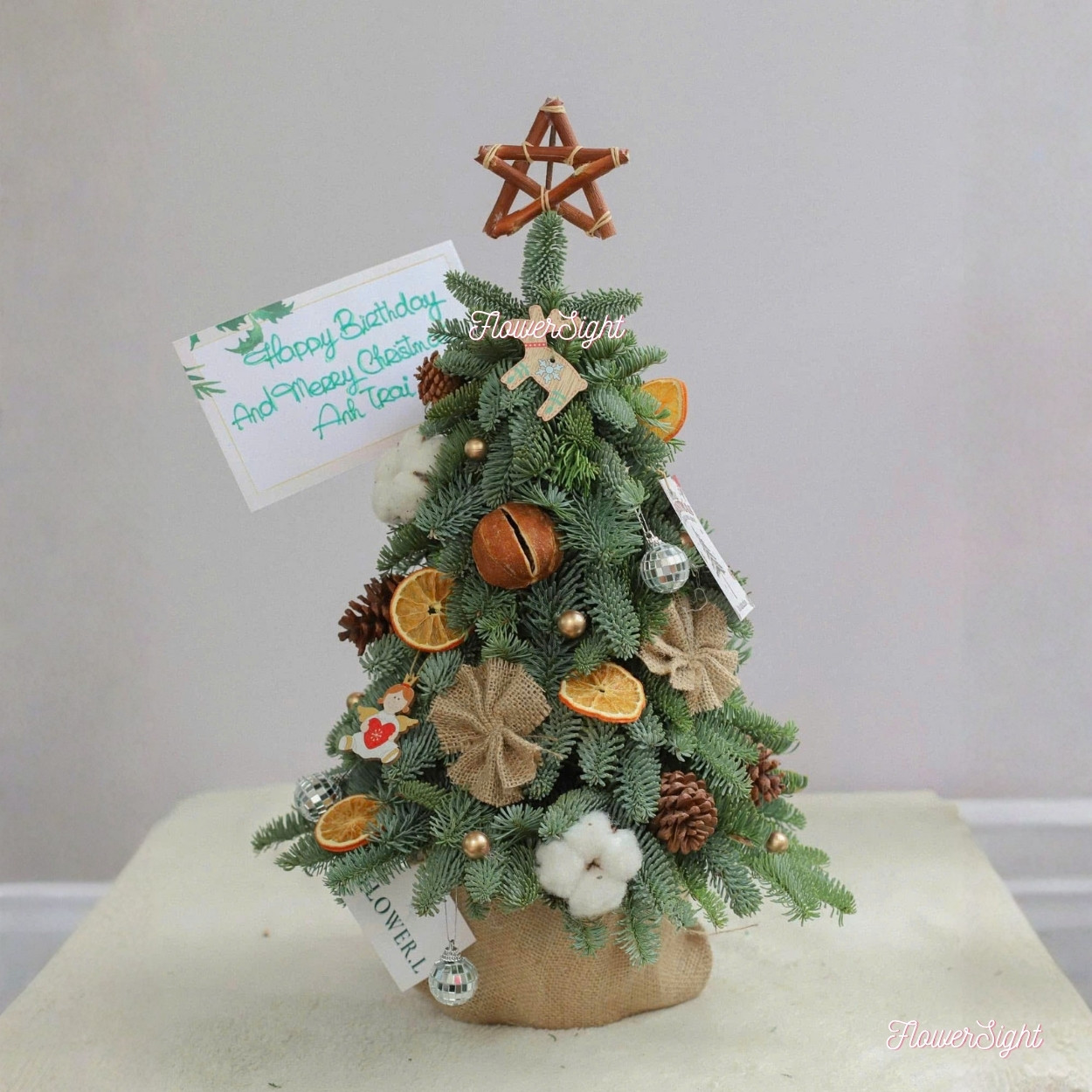 Olivia có kèm tag/thiệp để bạn viết thông điệp riêng. Chỉ cần một câu ngắn gọn, Olivia sẽ thay bạn hoàn thiện bầu không khí ấm áp của mùa lễ – tinh giản, tự nhiên và đủ tinh tế để khiến ai nhìn cũng mỉm cười.