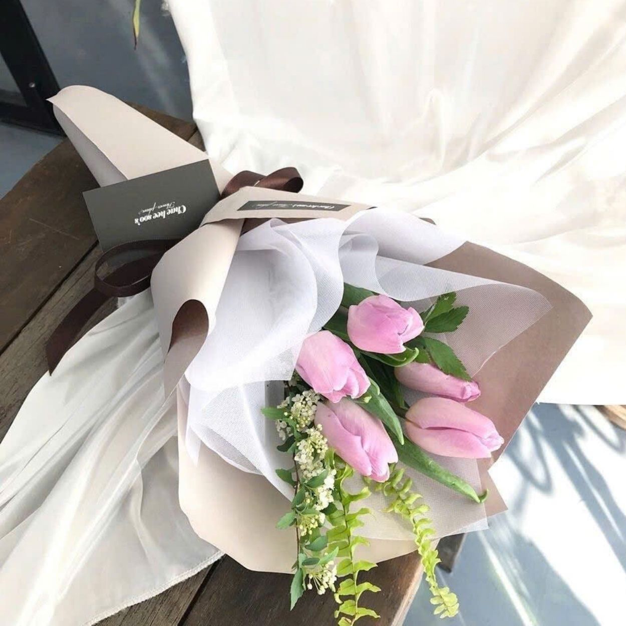 Có những món quà không cần nói nhiều – chỉ cần mở giấy gói, nhìn thấy năm nụ tulip hồng khẽ nghiêng vào nhau là đã hiểu trọn lòng người tặng. “Philomena” được tôi đặt tên như một lời thì thầm dịu dàng: mộc mạc, tinh sạch, nhưng đủ sâu để ở lại rất lâu trong ký ức.