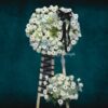 Kệ hoa chia buồn 2 tầng Phù du được tạo thành từ những bông hoa hồng trắng, đồng tiền trắng và hoa cẩm tú cầu trang trọng, mang lại cảm giác nhớ nhung những điều tốt đẹp nhất về một người. Đây là một sự nhớ mãi không phai và sâu đậm, lắng đọng trong trái tim.