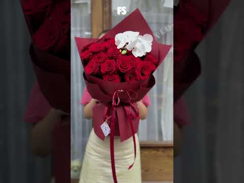 Ngay khi mở hộp, tôi tin bạn sẽ dừng lại vài giây chỉ để ngắm sắc đỏ mịn như nhung của hoa hồng Ecuador nổi bật trên nền giấy gói đỏ sang trọng. Một nhành lan hồ điệp trắng được đặt ở vị trí cao nhất như điểm sáng cuối cùng của bức tranh, khiến tổng thể vừa mạnh mẽ vừa tinh tế. “Red Rose” là kiểu bó dành cho những ai yêu vẻ đẹp tối giản nhưng giàu cảm xúc, nơi từng lớp cánh hoa được chăm chút để kể câu chuyện riêng của bạn trong ngày sinh nhật.