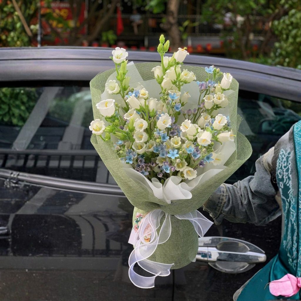 Bó hoa Sắc Hoa Quý Phái là sự hòa quyện hoàn hảo giữa các loài hoa nhẹ nhàng nhưng cuốn hút. Hoa chuông mềm mại và duyên dáng, sao xanh với sắc xanh dịu dàng như gửi gắm những lời chúc phúc an lành, và tuyết mai như một biểu tượng của sự thuần khiết, thanh thoát. Mỗi loài hoa trong bó đều mang một ý nghĩa đặc biệt, tạo nên một món quà không chỉ đẹp mắt mà còn chứa đựng tình cảm sâu sắc.
