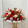Dĩa để bàn Sanctuary là sự kết hợp hoàn hảo của các loài hoa tươi như hoa hồng, cát tường, thiên điểu, lan, cùng với những lá bạc làm điểm nhấn, tạo nên một thiết kế hài hòa và cuốn hút. Mỗi loài hoa trong dĩa đều mang một ý nghĩa đặc biệt, từ sự lãng mạn của hoa hồng, cho đến vẻ đẹp quý phái của lan, tạo nên một bức tranh tuyệt mỹ trên bàn của bạn.